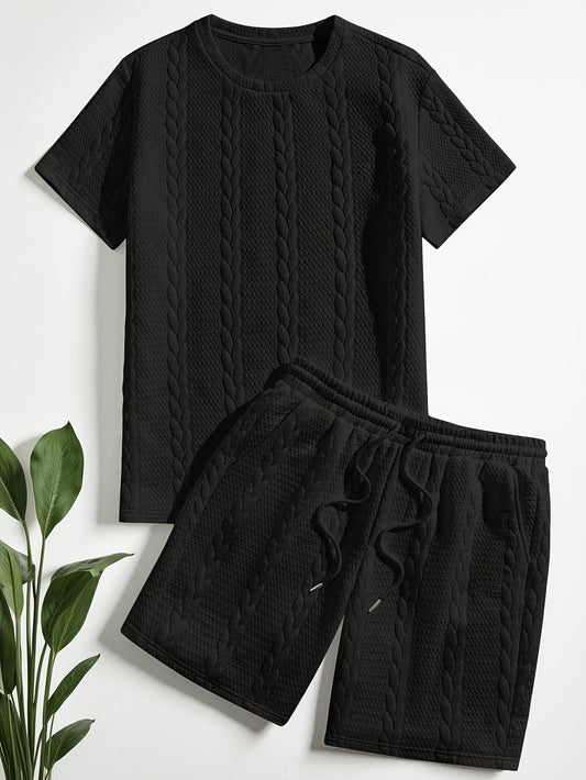 Men’s Summer Knit Set – 2-Piece Solid Color T-Shirt & Shorts